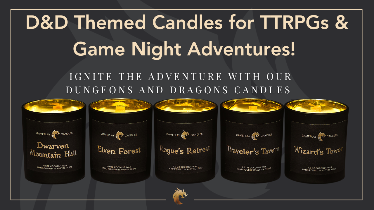 Whether it's your first time DMing, you're just getting into Dungeons and Dragons, or you are an avid fantasy enthusiast: lighting up a candle helps immerse you in the story and will fill the room with scents designed to teleport you into the adventure!